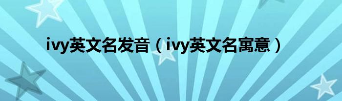 大家好,小问来为大家解答以上问题。ivy英文名发音,ivy英文名寓意这个很多人还不知道,现在让我们一起来看看吧!