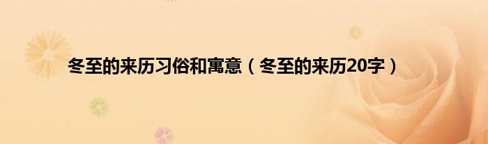 以上就是【冬至的来历习俗和寓意,冬至的来历20字】相关内容。