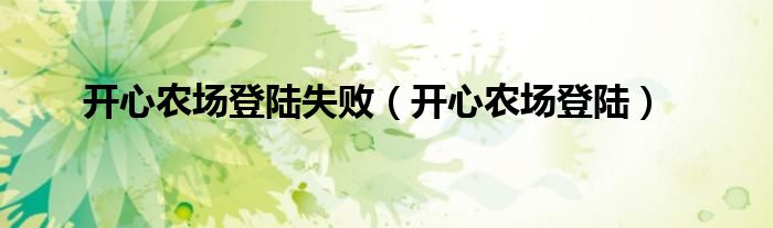大家好,小问来为大家解答以上问题。开心农场登陆失败,开心农场登陆这个很多人还不知道,现在让我们一起来看看吧!