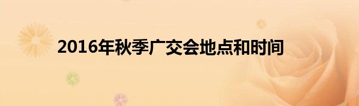 本文,2016年秋季广交会地点和时间到此就分享完毕,希望对大家有所帮助。