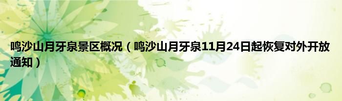 大家好,鸣沙山月牙泉景区概况,鸣沙山月牙泉11月24日起恢复对外开放通知很多人还不知道,现在让我们一起来看看吧!